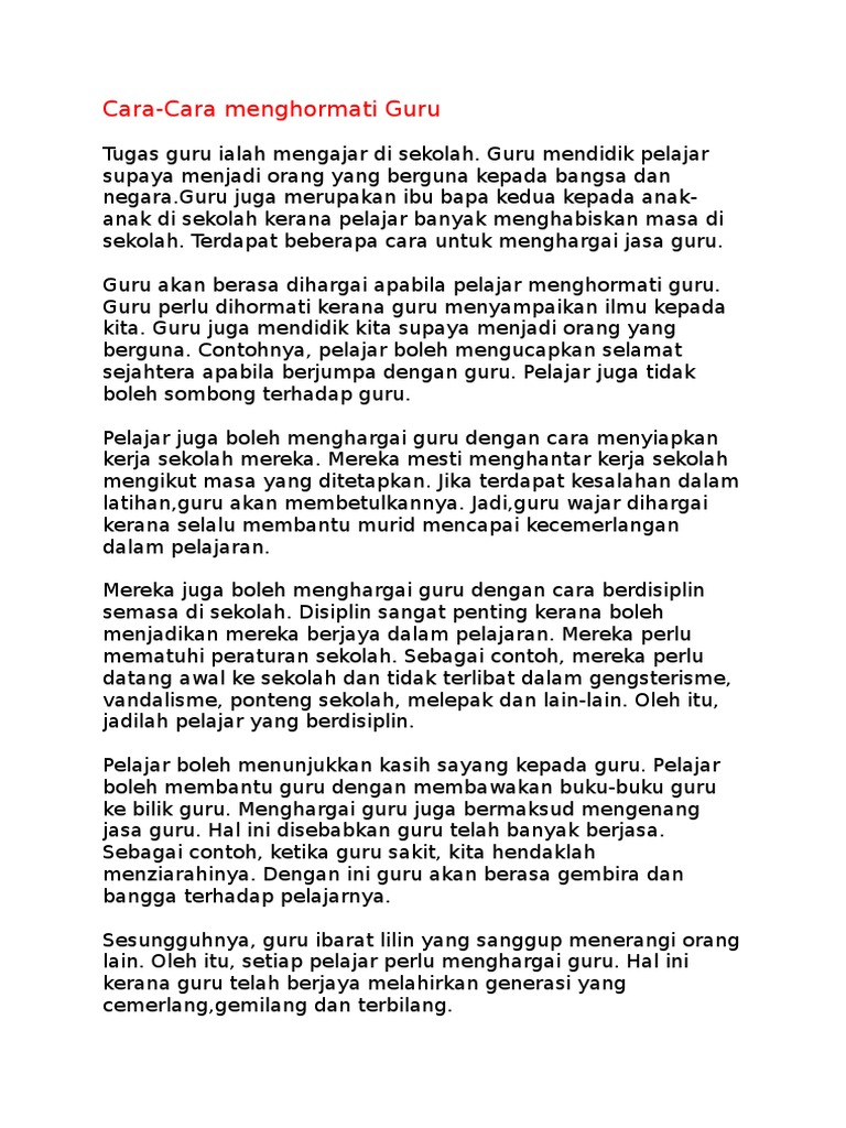 Contoh Karangan Cara Cara Menghormati Guru Spm