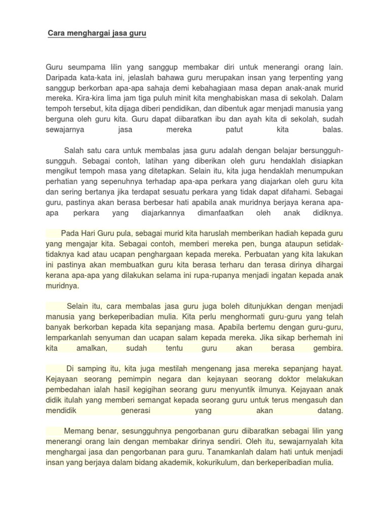 Usaha menghargai jasa guru - karangan tahap pt3 april 13. Cara-cara Menghargai Jasa Guru Guru ialah insan mulia yang mengajar dan mendidik kita tanpa mengira masa tenaga serta wang ringgit. Selamat Hari Guru Nasional Tahun 2021.